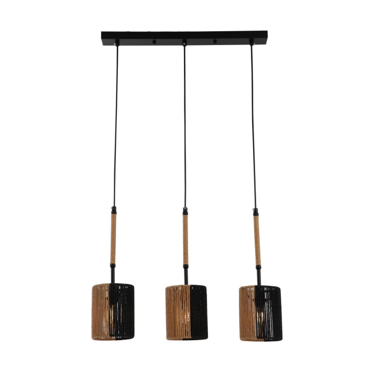 ร่างกายหลักของการขายเชือกกระดาษแบบชนบทที่ทอด้วยโคมไฟจี้ถักทอรองรับผู้ถือโคมไฟ E14 สามตัว (ด้วยพลังหลอดไฟเดียวสูงสุด 40W) และเข้ากันได้กับแหล่งกำเนิดแสงต่างๆเช่น LED และหลอดไฟประหยัดพลังงานตามมาตรฐานไฟฟ้าของตลาดต่าง ๆ เช่นสหภาพยุโรปและอเมริกาเหนือ สายช่วงล่างสีดำมาพร้อมกับอุปกรณ์ที่ปรับได้ช่วยให้ผู้ใช้สามารถปรับความยาวแขวนได้อย่างอิสระ (ช่วงที่ปรับได้: 30-120 ซม.) ตามความสูงของเพดานของห้องนั่งเล่นห้องรับประทานอาหารหรือห้องนอน ความยืดหยุ่นในการติดตั้งได้รับความนิยมอย่างสูงจากผู้ค้าส่งและลูกค้าโซ่ DIY
